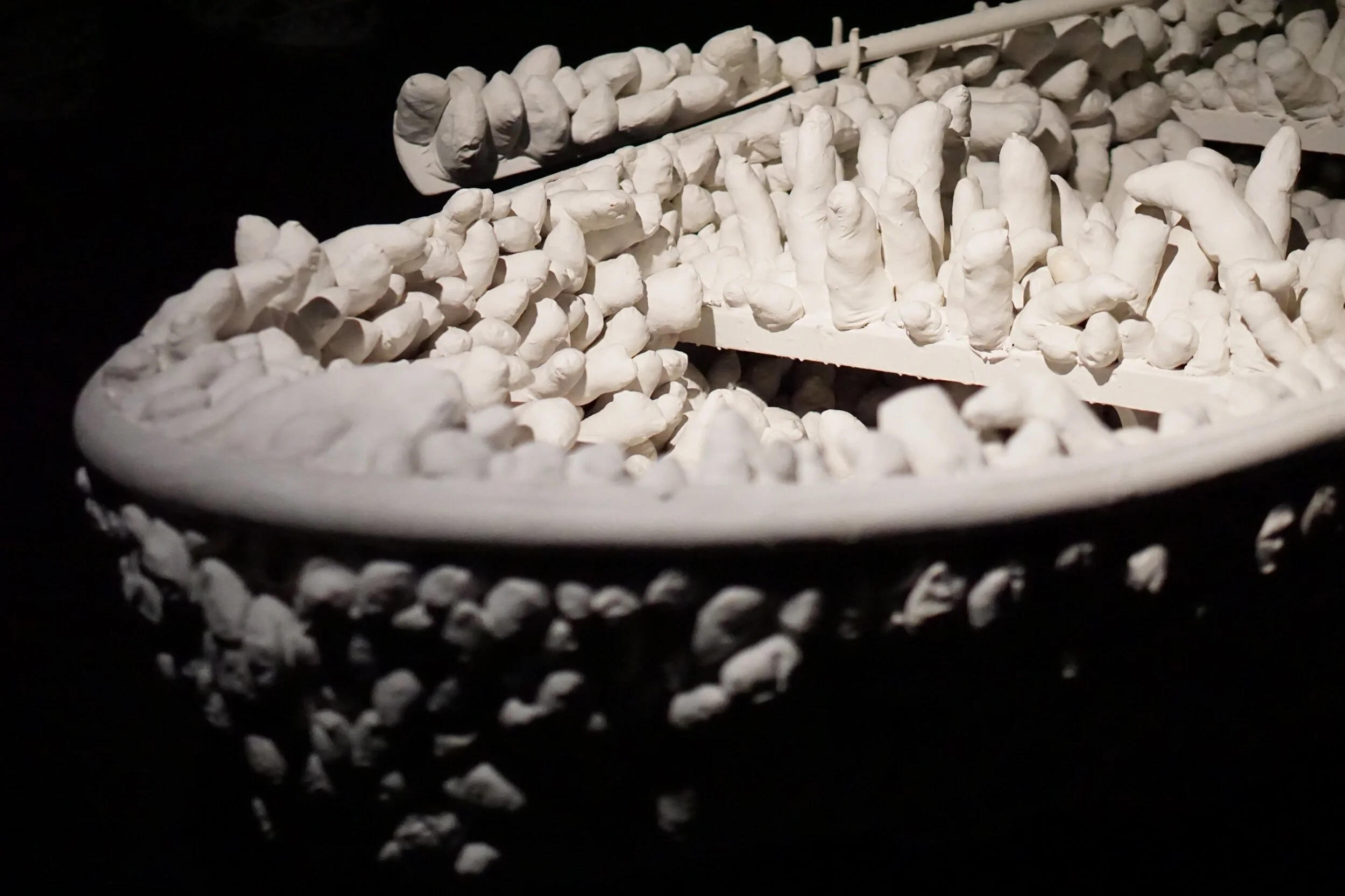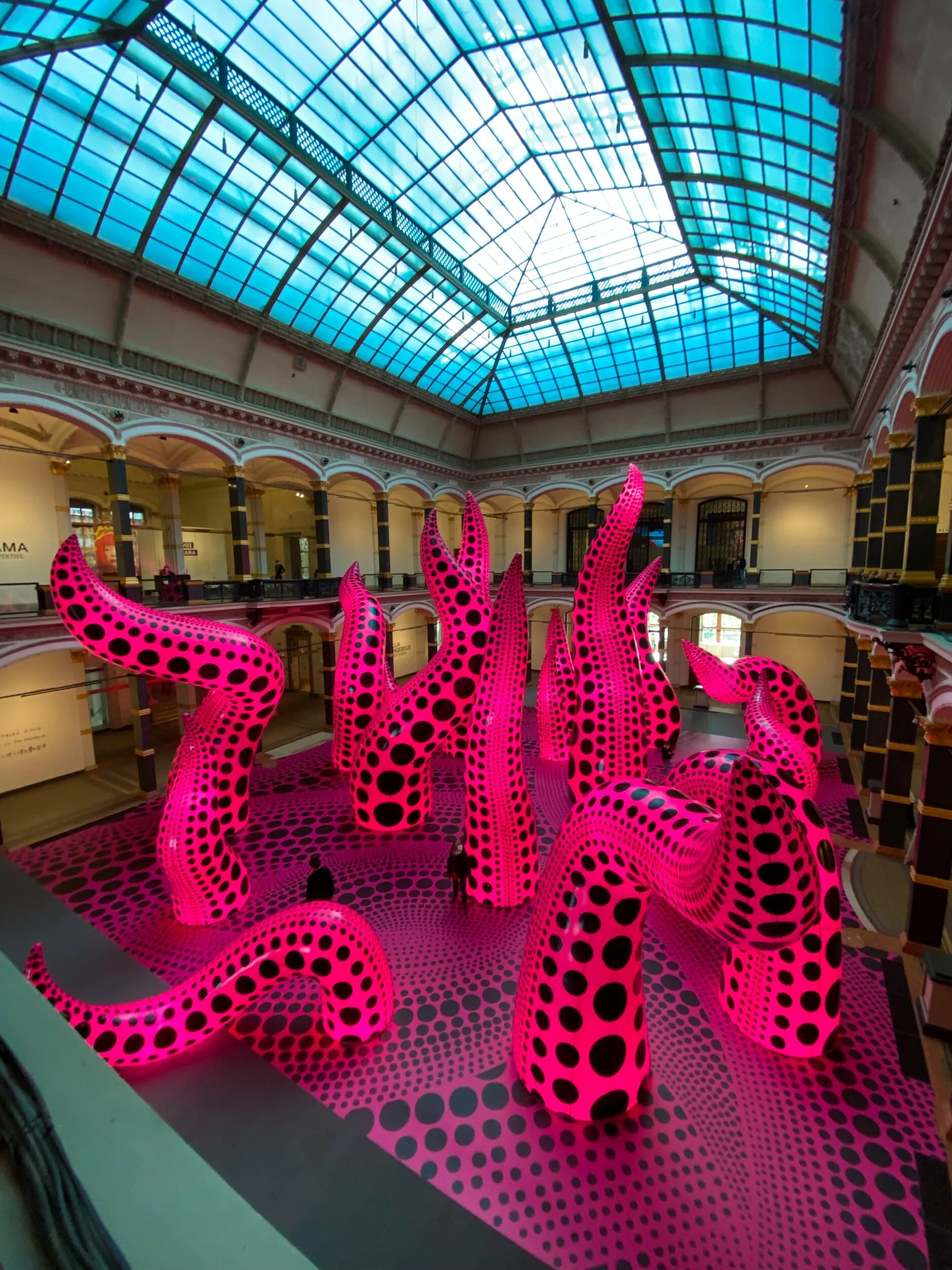 Antes de perderme en lo que sólo puedo describir como gigantezcos tentáculos rosas con puntos negros que brotaban del piso, un amable guía del Gropius Bau nos dijo que la exposición estaba en la segunda planta, que sólo teníamos permitidos 90 minutos para recorrer las 18 salas, y 30 minutos para ver la obra en el patio central. Mi idea original era la de tomar todas las fotos que pudiera, pero ahora se le agregaba el factor del tiempo, un nivel más de estrés que no sabía si lograría sobrepasar. Puse 80 minutos en el cronómetro después de haber subido las escaleras.
